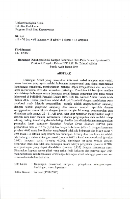 Baca Juga : HUBUNGAN DUKUNGAN SOSIAL DENGAN PENURUNAN STRES PADA PASIEN HIPERTENSI DI POLIKLINIK PENYAKIT DALAM BPK RSU DR. ZAINOEL ABIDIN BANDA ACEH TAHUN 2006 (Fitri Susanti, 2023)