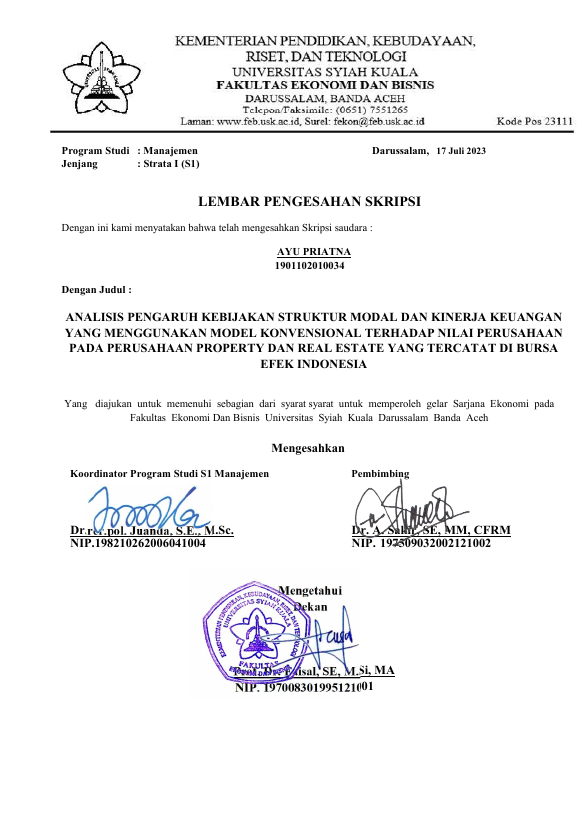 Baca Juga : ANALISIS PENGARUH KEBIJAKAN STRUKTUR MODAL DAN KINERJA KEUANGAN YANG MENGGUNAKAN MODEL KONVENSIONAL TERHADAP NILAI PERUSAHAAN PADA PERUSAHAAN PROPERTY DAN REAL ESTATE YANG TERCATAT DI BURSA EFEK INDONESIA (Ayu Priatna, 2023)