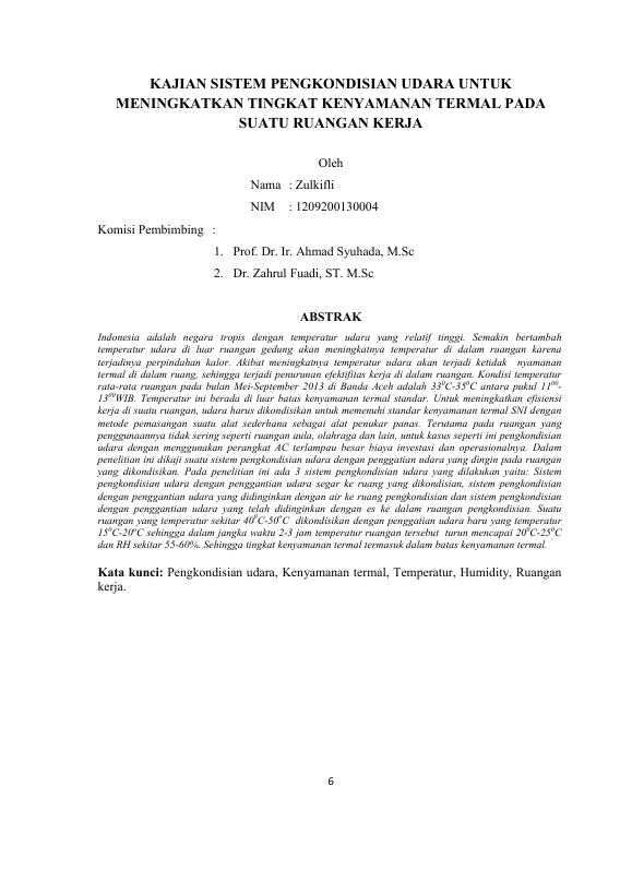 Zulkifli, KAJIAN SISTEM PENGKONDISIAN UDARA UNTUK MENINGKATKAN TINGKAT KENYAMANAN TERMAL PADA SUATU RUANGAN KERJA. Banda Aceh prog.magister teknik mesin,2014
