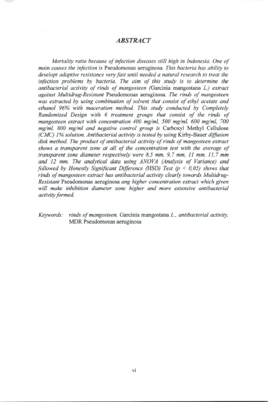 Farah Meutia, UJI AKTIVITAS ANTIBAKTERI EKSTRAK KULIT BUAH MANGGIS (GARCINIA MANGOSTANA L.) TERHADAP PERTUMBUHAN MULTIDRUG-RESISTANT PSEUDOMONAS AERUGINOSA SECARA IN VITRO. Banda Aceh Fakultas Kedokteran,2012
