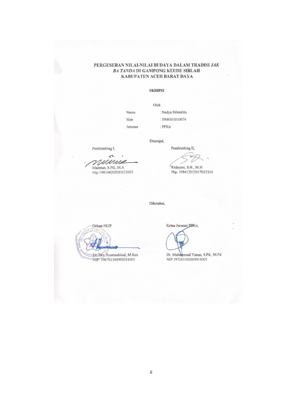 NADYA RILMALITA, PERGESERAN NILAI-NILAI BUDAYA DALAM TRADISI JAK BA TANDA DI GAMPONG KEUDE SIBLAH KABUPATEN ACEH BARAT DAYA. Banda Aceh Fakultas KIP PPKN,2023