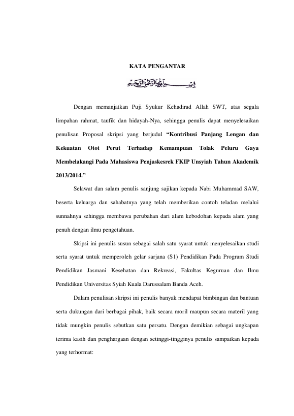 zulfikar, KONTRIBUSI PANJANG LENGAN DAN KEKUATAN OTOT PERUT TERHADAPRNKEMAMPUAN TOLAK PELURU GAYA MEMBELAKANGI PADA MAHASISWA PROGRAM STUDI PENJASKESKREK FKIP UNSYIAH TAHUN AKADEMIK 2013/2014. Banda Aceh Fakultas Keguruan dan Ilmu Pendidikan,2014