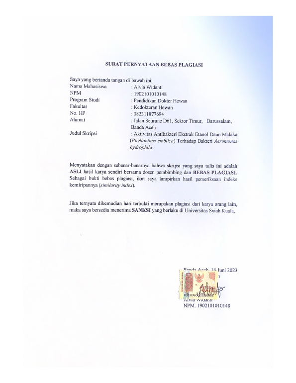 Baca Juga : AKTIVITAS ANTIBAKTERI EKSTRAK N-HEKSAN, ETIL ASETAT, METANOL DAUN MALAKA (PHYLLANTHUS EMBLICA) TERHADAP AEROMONAS HYDROPHILA (Dina Fazila, 2022)