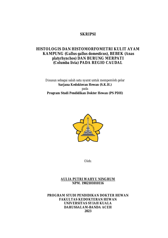 Baca Juga : HISTOLOGIS DAN HISTOMORFOMETRI KULIT AYAM KAMPUNG (GALLUS GALLUS DOMESTICUS), BEBEK (ANAS PLATYRHYNCHOS) DAN BURUNG MERPATI (COLUMBA LIVIA) PADA REGIO CAUDAL (AULIA PUTRI WAHYU NINGRUM, 2023)