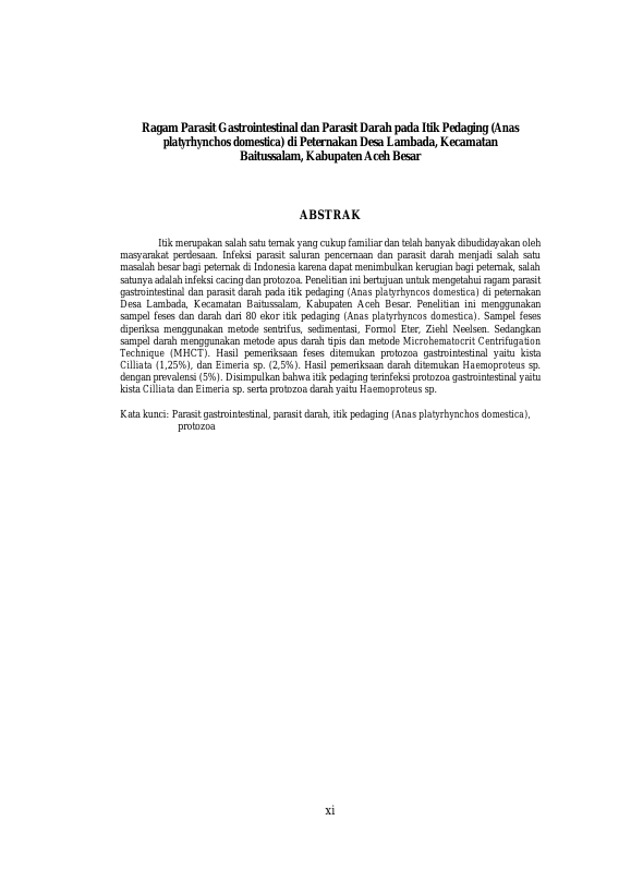 Baca Juga : RAGAM PARASIT GASTROINTESTINAL PADA ITIK PETELUR (ANAS PLATYRHYNCHOS DOMESTICUS) DI PETERNAKAN ITIK DESA LAMBADA KECAMATAN BAITUSSALAM KABUPATEN ACEH BESAR (Fatimah Ummul Aiman, 2023)