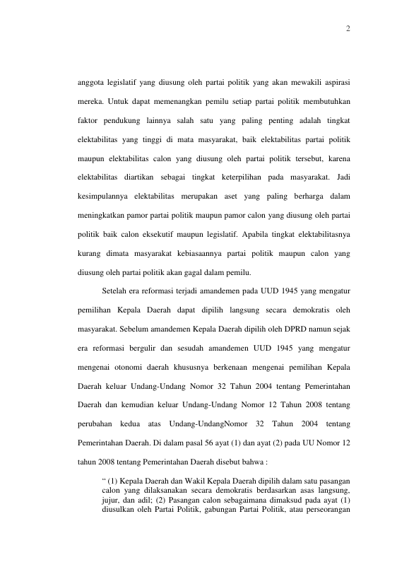 Teuku Aidyl Rahmad, PENGARUH ELEKTABILITAS BUPATI DAN WAKIL BUPATI YANG DIUSUNG PARTAI POLITIK PADA PEMILUKADA KABUPATEN ACEH BARAT (SUATU KAJIAN SIKAP PEMILIH DI KECAMATAN JOHAN PAHLAWAN, SAMATIGA DAN BUBON PADA PEMILUKADA TAHUN 2012 ACEH BARAT). Banda Aceh Fakultas Ilmu Sosial dan ilmu Politik,2014