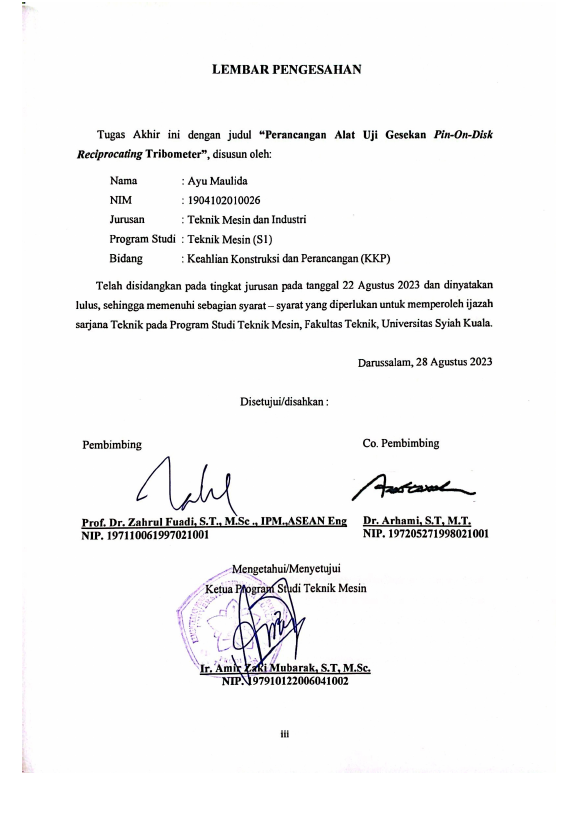 Baca Juga : ANALISIS GESEKAN DAN LAJU KEAUSAN LOGAM PADA LINGKUNGAN PELUMASAN METHYL ESTER (Mahadir Muhammad, 2019)