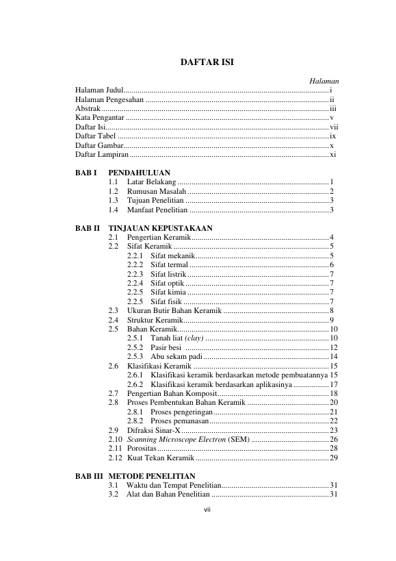 Baca Juga : STUDI PENGARUH ELEVASI TEMPERATUR TERHADAP SIFAT FISIK DAN KUAT TEKAN DARI KERAMIK KOMPOSIT TANAH LIAT/PASIR/ABU SEKAM PADI (Vis Ari Nanda Darmawan, 2014)