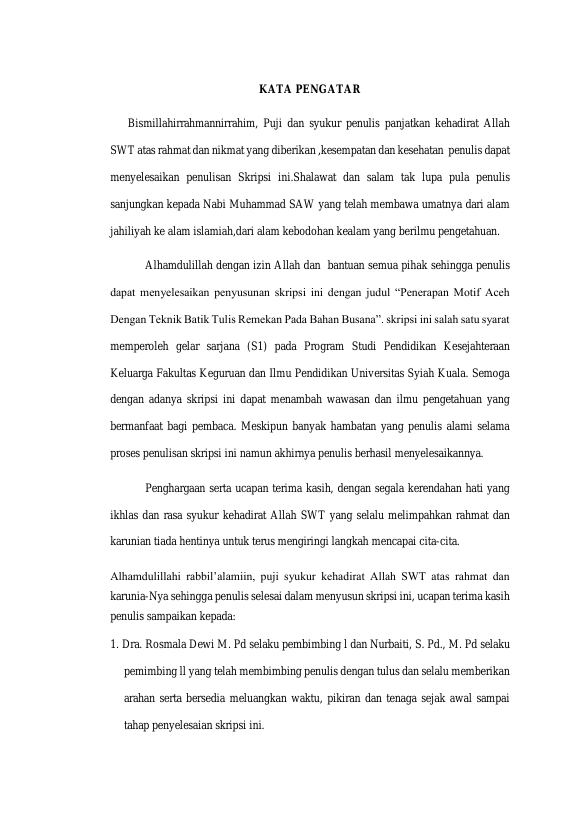NURI ARISKA, PENERAPAN MOTIF ACEH DENGAN TEKNIK BATIK TULIS REMEKAN PADA BAHAN BUSANA. Banda Aceh Fakultas KIP PKK,2023