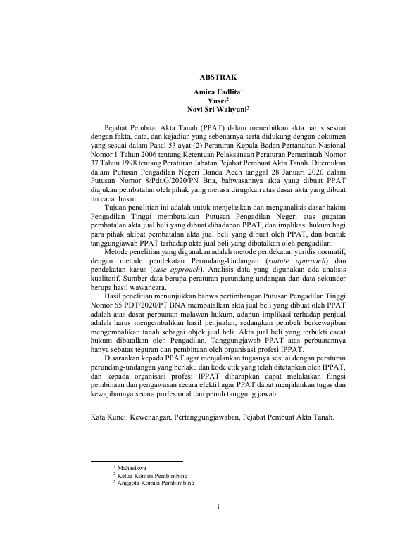 Baca Juga : KEWENANGAN DAN PERTANGGUNGJAWABAN HUKUM PEJABAT PEMBUAT AKTA TANAH DALAM PEMBUATAN AKTA TANAH (ANALISIS PUTUSAN PENGADILAN TINGGI NOMOR 65 PDT/2020/PT BNA) (Ivan Sunardy, 2023)
