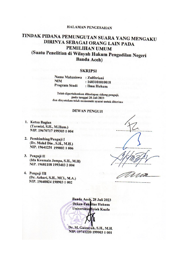 Baca Juga : TINDAK PIDANA PERUSAKAN SURAT SUARA MENJADI TIDAK BERNILAI PADA PEMILIHAN UMUM TAHUN 2019 (SUATU PENELITIAN DI WILAYAH HUKUM PENGADILAN NEGERI LANGSA) (ICHA RAHMADANI, 2021)