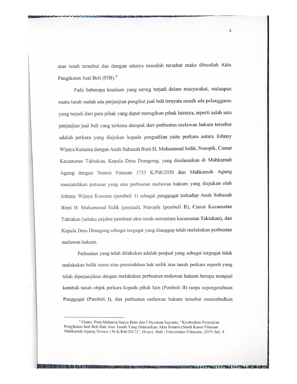 Baca Juga : STUDI KASUS PUTUSAN MAHKAMAH AGUNG NOMOR 240 PK/PDT/2019 TENTANG WANPRESTASI PERJANJIAN PENGIKATAN JUAL BELI ATAS TANAH (Sutan Budi Nuzul Ramadhan, 2020)