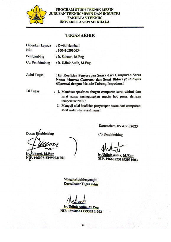 Baca Juga : UJI KOEFISIEN PENYERAPAN SUARA DARI CAMPURAN SERAT NANAS (ANANAS COMOSUS) DAN SERAT BIDURI (CALOTROPIS GIGANTEA) DENGAN METODE TABUNG IMPEDANSI (DWIKI HAMBALI, 2023)