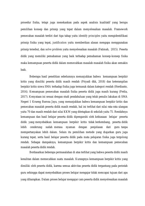 Baca Juga : PENGARUH LATIHAN PENYELESAIAN SOAL FISIKA DENGAN MODEL PROBLEM SOLVING "MINNESOTA STRATEGY" TERHADAP HASIL BELAJAR SISWA DAN KEMAMPUAN BERFIKIR KRITIS (Merisa. Ns, 2019)