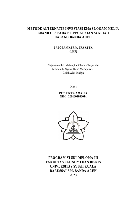 Cut Rizka Amalia, METODE ALTERNATIF INVESTASI EMAS LOGAM MULIA BRAND UBS PADA PT. PEGADAIAN SYARIAH CABANG BANDA ACEH. Banda Aceh Fakultas Ekonomi dan Bisnis Keuangan dan Perbankan (D3),2023