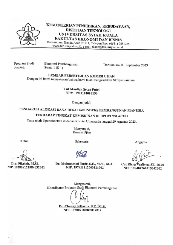 Baca Juga : PENGARUH ALOKASI DANA DESA DAN INDEKS PEMBANGUNAN MANUSIA TERHADAP TINGKAT KEMISKINAN DI PROVINSI ACEH (Cut Maulida Setya Putri, 2023)