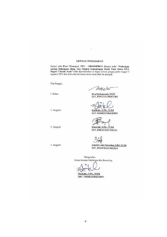 Putri Mumayri, HUBUNGAN ANTARA DUKUNGAN ORANG TUA DENGAN KEMATANGAN KARIR PADA SISWA SMA NEGERI 3 BANDA ACEH. Banda Aceh Fakultas KIP Bimbingan dan Konseling,2023