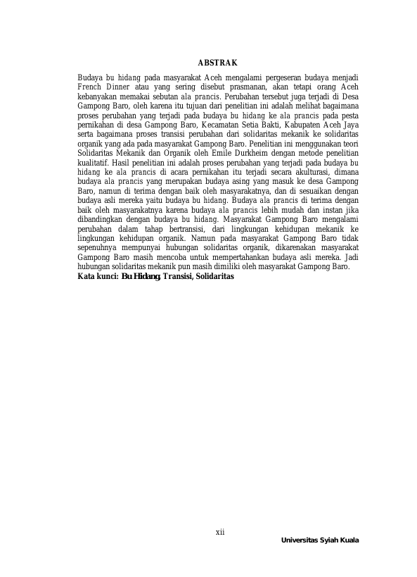Irni Safriani, PERUBAHAN BUDAYA BU HIDANG KE ALA PRANCIS PADA ACARA PERNIKAHAN DI DESA GAMPONG BARO KECAMATAN SETIA BAKTI KABUPATEN ACEH JAYA. Banda Aceh Fakultas FISIPOL,2023