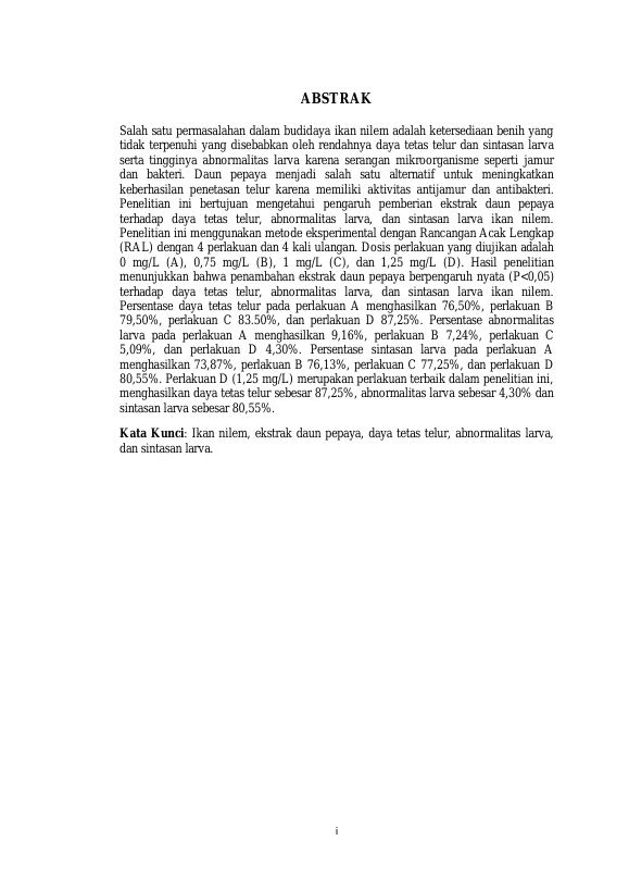 Baca Juga : PEMANFAATAN EKSTRAK DAUN PEPAYA (CARICA PAPAYA) TERHADAP DAYA TETAS TELUR DAN KELANGSUNGAN HIDUP LARVA IKAN TAWES (BARBONYMUS GONIONOTUS) (ARIF BILLAH, 2022)