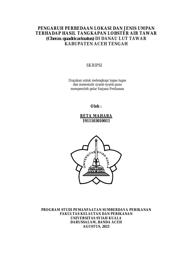 Baca Juga : ANALISIS HASIL TANGKAPAN LOBSTER AIR TAWAR DENGAN MENGGUNAKAN ALAT TANGKAP BUBU WAU DI TELUK ONE-ONE, DANAU LAUT TAWAR, KABUPATEN ACEH TENGAH (Nisma Artelin, 2021)