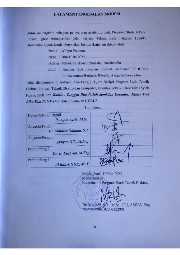 Wahyu Pratama, ANALISIS QOS LAYANAN INTERNET DEDICATED PT ICON+ LHOKSEUMAWE BERBASIS WIRESHARK DAN NETWORK MINER. Banda Aceh Fakultas Teknik,2023