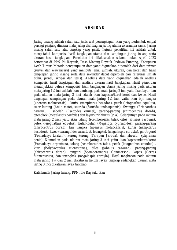 Baca Juga : STUDI HASIL TANGKAPAN JARING INSANG (GILLNET) NELAYAN DESA MATANG RAYEUK PEDAWA PUNTONG YANG DIDARATKAN DI PELABUHAN PERIKANAN NUSANTARA (PPN), KABUPATEN ACEH TIMUR (Wulan Agustri, 2023)