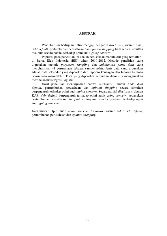 Baca Juga : PENGARUH RASIO LIKUIDITAS, RASIO LEVERAGE, DAN OPINI AUDIT TAHUN SEBELUMNYA TERHADAP PENERIMAAN OPINI AUDIT GOING CONCERN (STUDI EMPIRIS PADA PERUSAHAAN MANUFAKTUR YANG TERDAFTAR DI BURSA EFEK INDONESIA TAHUN 2009-2011) (Mezia Madina, 2013)