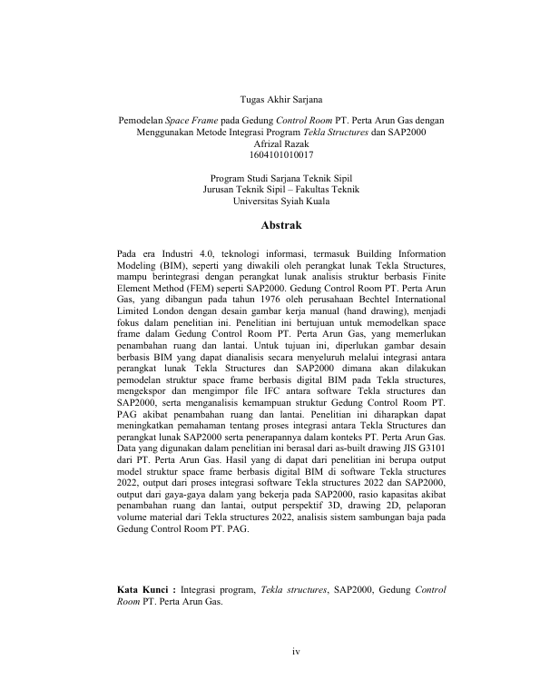 Baca Juga : PEMODELAN SPACE FRAME PADA GEDUNG CONTROL ROOM PT. PERTA ARUN GAS DENGAN MENGGUNAKAN METODE INTEGRASI PROGRAM TEKLA STRCTURES DAN ETABS (Reza Aulia Akbar, 2021)