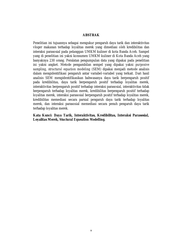 WAIS ALQORNI, PENGARUH DAYA TARIK DAN INTERAKTIVITAS VLOGER MAKANAN TERHADAP LOYALITAS MEREK YANG DIMEDIASI OLEH KREDIBILITAS DAN INTERAKSI PARASOSIAL PELANGGAN UMKM KULINER KOTA BANDA ACEH. Banda Aceh Fakultas Ekonomi,2023