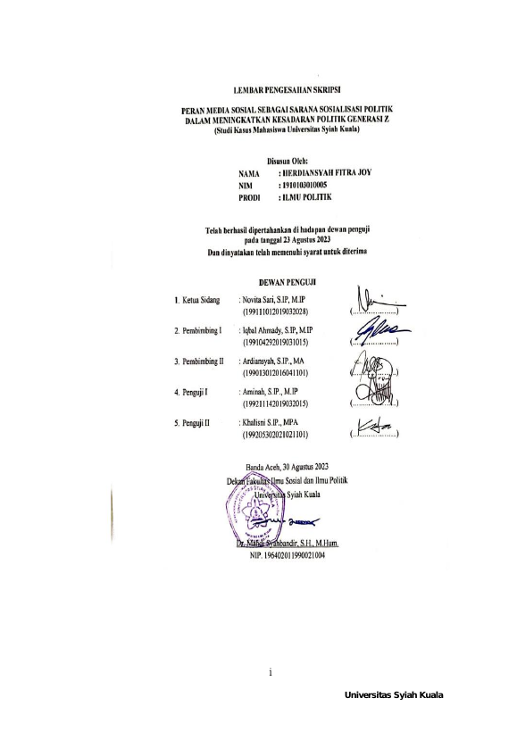 Baca Juga : SOSIALISASI PENDIDIKAN POLITIK MAHASISWA MELALUI ORGANISASI KEMAHASISWAAN (SUATU STUDI ORGANISASI INTRA KAMPUS UNSYIAH) (ishani, 2016)