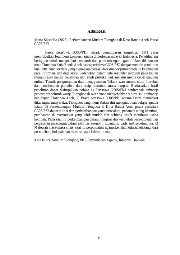MUTIA SALSABILA, PERKEMBANGAN MUSLIM TIONGHOA DI KOTA BANDA ACEH PASCA G30S/PKI. Banda Aceh Fakultas FKIP,2023