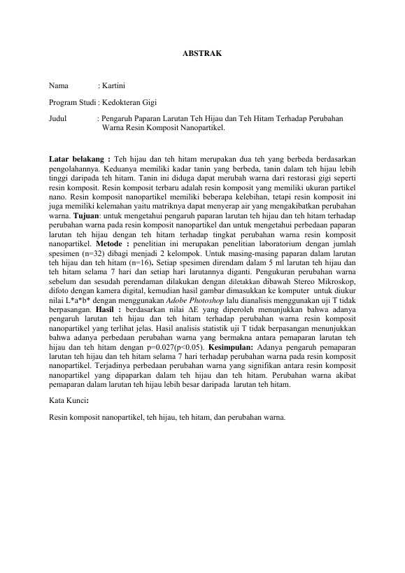 Baca Juga : PENGARUH PAPARAN LARUTAN TEH HIJAU DAN TEH HITAM TERHADAPRNPERUBAHAN WARNA RESIN KOMPOSIT NANOPARTIKEL. (Kartini, 2023)