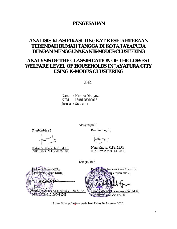 Baca Juga : ANALISIS KLASIFIKASI TINGKAT KESEJAHTERAAN TERENDAH RUMAH TANGGA DI KOTA JAYAPURA DENGAN MENGGUNAKAN K-MODES CLUSTERING (Merriza Disriyoza, 2023)