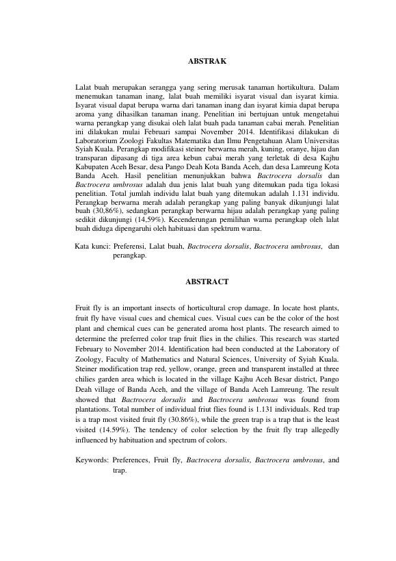 Baca Juga : KERAGAMAN SPESIES LALAT BUAH (DIPTERA: TEPHRITIDAE) PADA JERUK LEMON DI KECAMATAN LEMBAH SEULAWAH KABUPATEN ACEH BESAR (Cut Zarra Fazia, 2017)