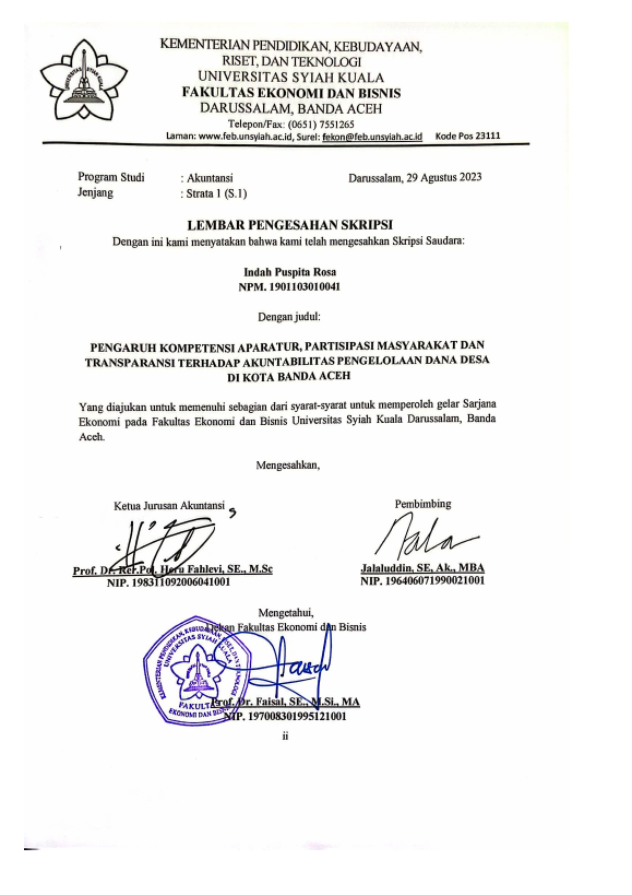 Baca Juga : PENGARUH PENERAPAN SISTEM KEUANGAN DESA (SISKEUDES), KOMPETENSI APARATUR DESA, DAN TRANSPARANSI TERHADAP AKUNTABILITAS PENGELOLAAN DANA DESA DI KECAMATAN KARANG BARU KABUPATEN ACEH TAMIANG (Dinda Puspita, 2023)