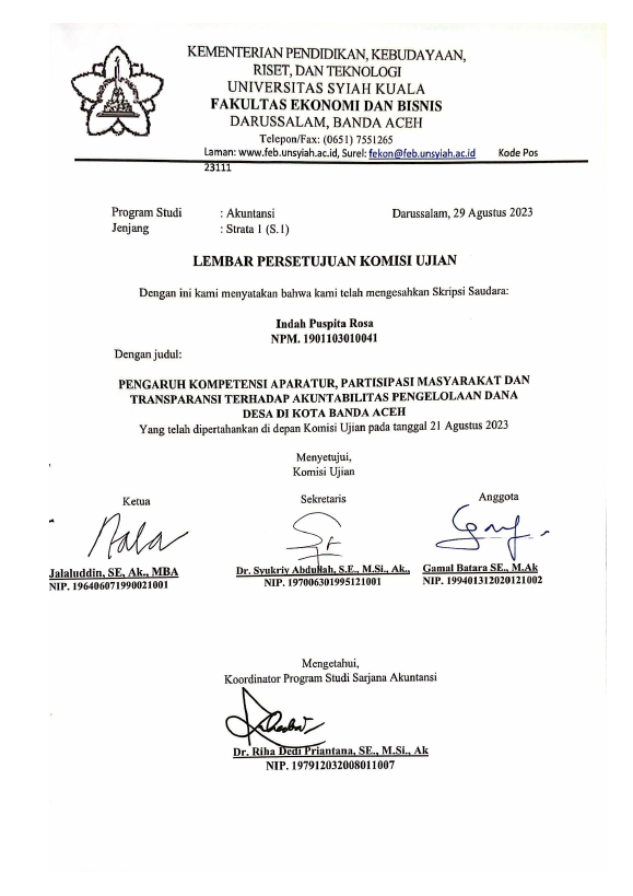 Baca Juga : PENGARUH PENERAPAN SISTEM KEUANGAN DESA (SISKEUDES), KOMPETENSI APARATUR DESA, DAN TRANSPARANSI TERHADAP AKUNTABILITAS PENGELOLAAN DANA DESA DI KECAMATAN KARANG BARU KABUPATEN ACEH TAMIANG (Dinda Puspita, 2023)