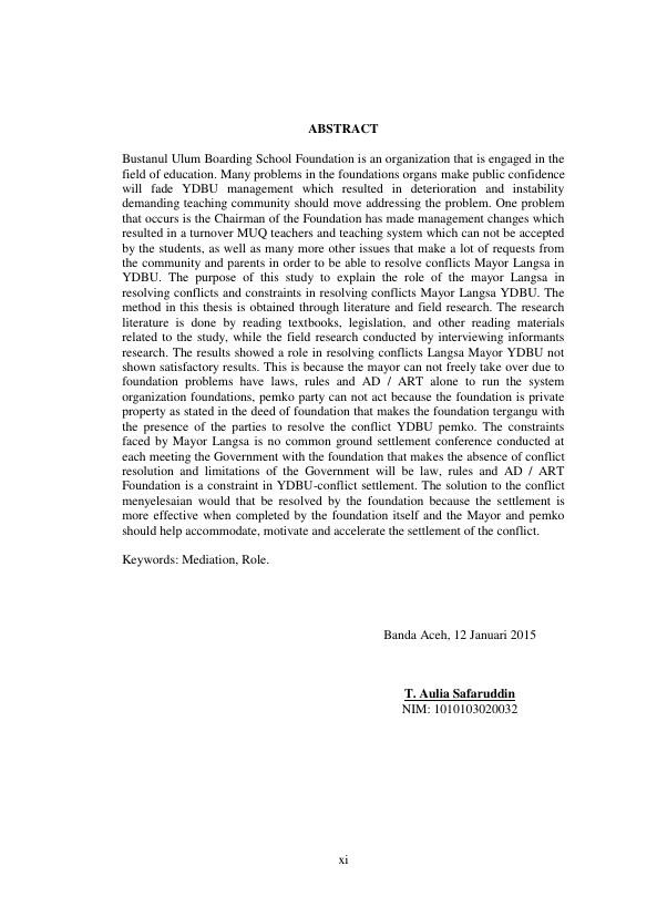 T. Aulia Safaruddin, PERAN WALIKOTA LANGSA DALAM PENYELESAIAN KONFLIK YAYASAN DAYAH BUSTANUL ULUM. Banda Aceh Fakultas Ilmu Sosial dan ilmu Politik,2015