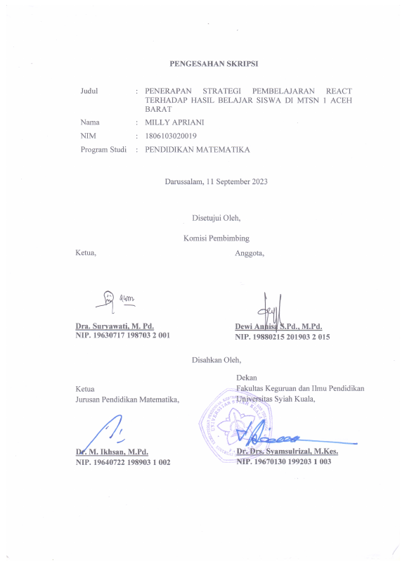 Baca Juga : PENERAPAN STRATEGI PEMBELAJARAN REACT TERHADAP HASIL BELAJAR SISWA DI MTSN 1 ACEH BARAT (Milly Apriani, 2023)