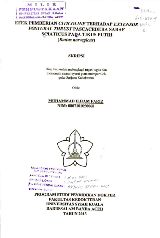 Baca Juga : PERAN CITICOLINE DALAM MENCEGAH NYERI NEUROPATIK PASCACEDERA SARAF SCIATICUS PADA TIKUS PUTIH (RATTUS NORVEGICUS) (Yessi Handini, 2015)