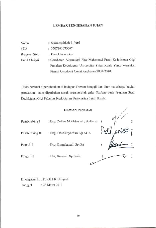 Nurmasyithah I. Putri, GAMBARAN AKUMULASI PLAK MAHASISWI PRODI KEDOKTERAN GIGI FAKULTAS KEDOKTERAN UNIVERSITAS SYIAH KUALA YANG MEMAKAI PIRANTI ORTODONTI CEKAT ANGKATAN 2007-2010.. Banda Aceh Fakultas Kedokteran,2011