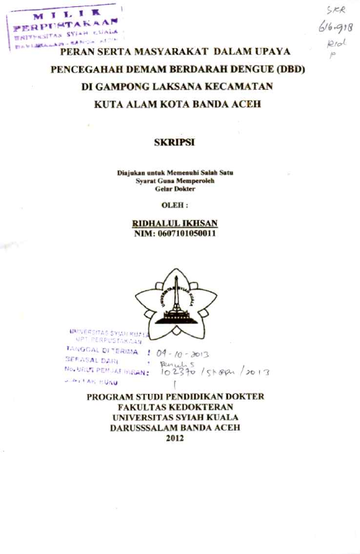 Baca Juga : TINDAKAN MASYARAKAT DALAM PENCEGAHAN PENYAKIT DEMAM BERDARAH DENGUE (DBD)DI GAMPONG RUKOH KECAMATAN SYIAH KUALA (Ernarita, 2015)