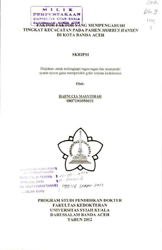 Baca Juga : FAKTOR FAKTOR YANG MEMPENGARUHI TINGKAT KECACATAN PADA PASIEN MORBUS HANSEN DI KOTA BANDA ACEH (HAFNI CIA MASYITHAH, 2015)