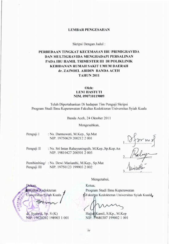 Baca Juga : PERBEDAAN TINGKAT KECEMASAN PADA PRIMIGRAVIDA DENGAN MULTIGRAVIDA MENJELANG PERSALINAN DI RSUD DR. ZAINOEL ABIDIN BANDA ACEH (Elfiani, 2016)