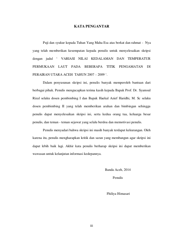 Fhiliya Himasari, VARIASI NILAI KEDALAMAN DAN TEMPERATUR PERMUKAAN LAUT PADA BEBERAPA TITIK PENGAMATAN DI PERAIRAN UTARA ACEH TAHUN 2007 - 2009. Banda Aceh Fakultas Kelautan dan perikanan,2014