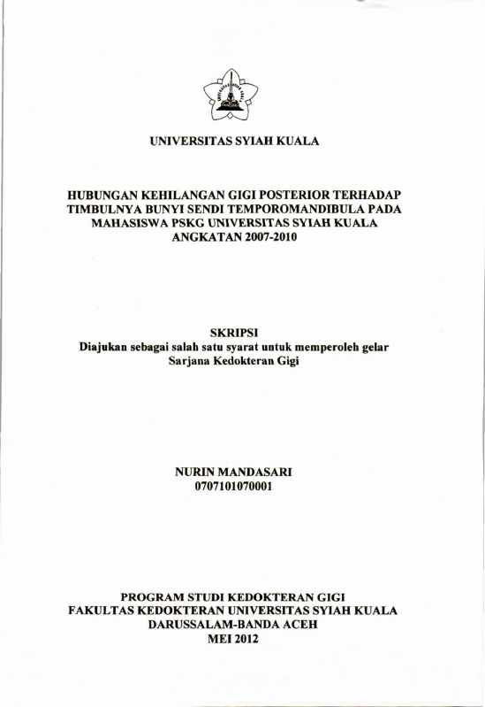 Baca Juga : HUBUNGAN KEBIASAAN MENGUNYAH SATU SISI TERHADAP BUNYI KLIKING PADA SENDI TEMPOROMANDIBULA (ANALISA PADA MAHASISWA PROGRAM STUDI PENDIDIKAN DOKTER GIGI UNIVERSITAS SYIAH KUALA) (Muhammad Yusuf, 2014)