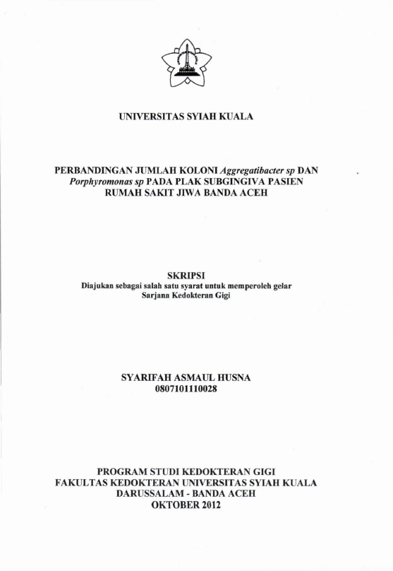 Baca Juga : PERBANDINGAN JUMLAH KOLONI AGGREGATIBACTER SP DAN PORPHYROMONAS SP PADA PLAK SUBGINGIVA PASIEN RUMAH SAKIT JIWA BANDA ACEH (Syarifah Asmaul Husna, 2023)