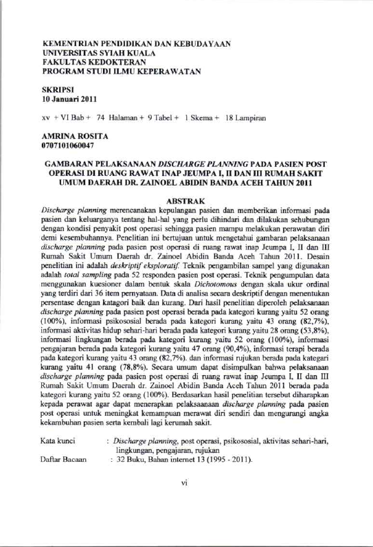 Baca Juga : PENGETAHUAN PERAWAT TENTANG DISCHARGE PLANNING DI RUANG RAWAT INAP RUMAH SAKIT UMUM DAERAH MEURAXA BANDA ACEH (SITI MAISAROH, 2025)