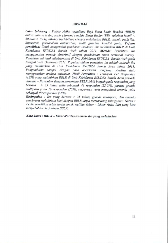 Meri Deviana, GAMBARAN INSIDENSI IBU MELAHIRKAN BAYI BERAT LAHIR RENDAH (BBLR) DI RUMAH SAKIT UMUM DAERAH DR. ZALNOEL ABIDIN BANDA ACEH PERIODE JANUARI - NOVEMBER TAHUN 2011. Banda Aceh Fakultas Kedokteran,2012
