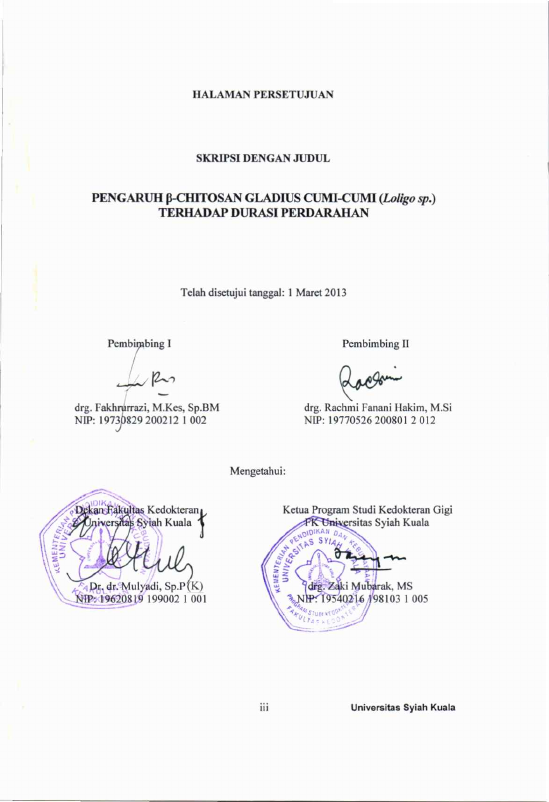 Baca Juga : PENGARUH B-CHITOSAN GLADIUS CUMI-CUML (LOLIGO SP.) TERHADAP DURASI PERDARAHAN (Meutia Hafrida Hanafiah, 2023)