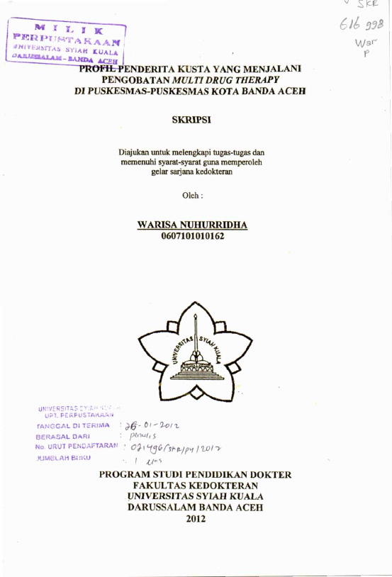 Baca Juga : PROFIL PENDERITA KUSTA YANG MENJALANI PENGOBATAN MULTI DRUG THERAPY DI PUSKESMAS - PUSKESMAS KOTA BANDA ACEH (Warisa Nuhurridha, 2023)